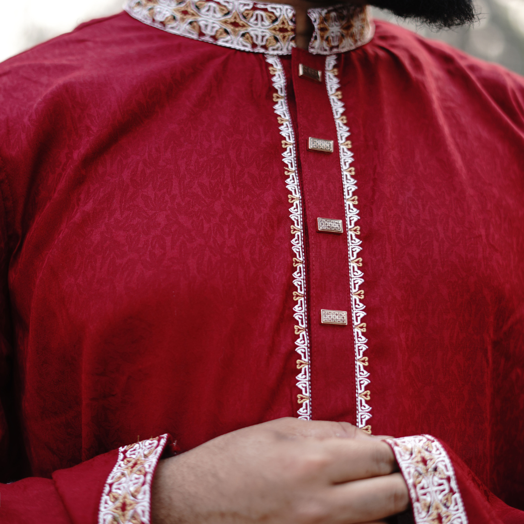 লাক্সারিয়াস জ্যাকওয়ার্ড কটন কাপড়ের এই পাঞ্জাবীটি তে দেওয়া হয়েছে স্নাপ বাটন ও সুন্দর এম্ব্রোডারী ডিজাইন।